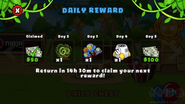 与其他手机游戏一样,Bloons TD 5提供玩家可以领取的每日奖励,例如金钱、特殊猴子和物品。如果您运气不好,奖励和资金的发放速度可能会非常缓慢,因此请确保在打开应用程序时从巨大的宝箱中收集它们。您可以将赚到的钱花在可以给您带来一些好处的特色建筑上。
