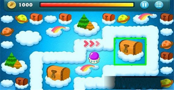本关开局拥有1000块钱,现在截图位置建立一个多重箭,升级到满级。然后打截图位置的那个宝箱。最开始发射出去的箭是打不到宝箱的,只能攻击到旁边的云,别害怕,等云打完以后就可以打宝箱了。
