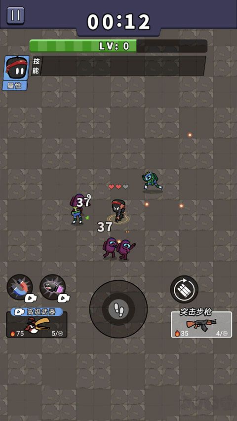 3、滑动中心按钮以躲避敌方攻击,与敌方保持适当距离。英雄将自动射击并自动刷新子弹