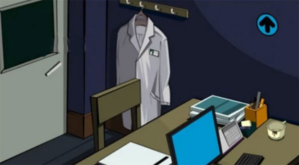 12、点右上箭头,点天花板上的通风口,进入天棚,打开工具箱,点遥控器,点使用,看剧情动画。后退2次,点向右箭头,点隔板处向右的箭头,再点向右的箭头,进入黄色区域,点通风口2次,进入医生房间,点向下箭头,拿墙上挂的白大褂,点门离开医生房间。