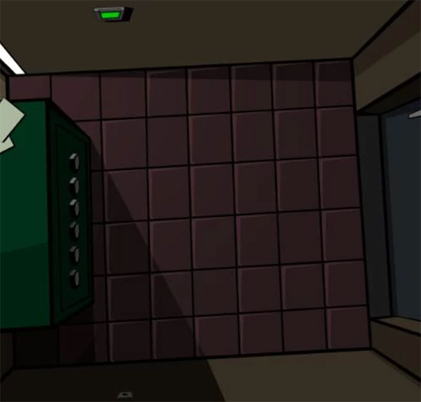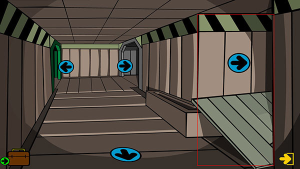 6、点下面箭头,点向左箭头,点右侧墙上灰色隔板,打开隔板,点向上的箭头,进入红色区域,点地上的通风口2次,进入药房。