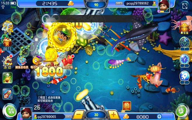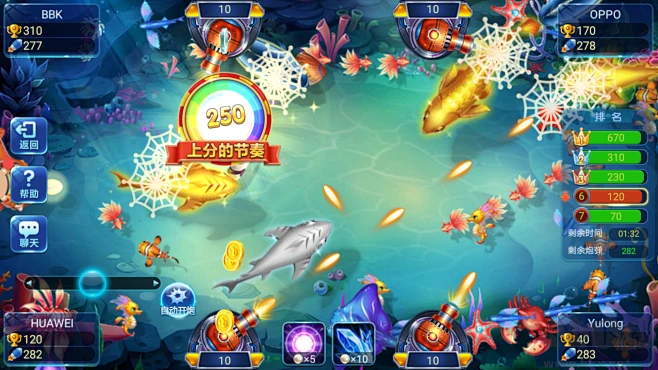 鱼类射击操作:通过简单的点击或滑动操作瞄准鱼类并进行射击。建议玩家多加练习,以提升射击技术。