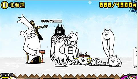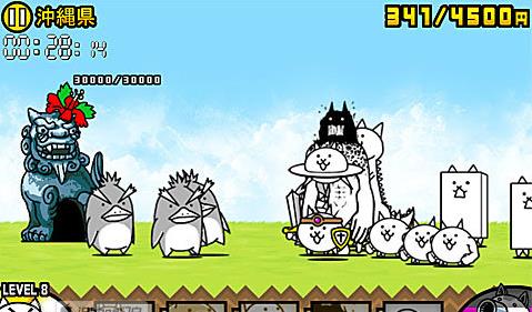 敌人的城堡终于突破2W到达25000了,这一关小编建议尽量把所有兵种全部升为最高级,特别是巨神喵,巨神喵升级为喵大帅后,不仅能抗而且还很能打,基础兵种的意义现在变成拖延时间且累计资金,这一关的敌人还是老对手,从喵颈鹿开始出兵才有可能获胜,喵大帅出兵2-3只就够了,其他的交给喵UFO和喵龙以及喵鲸。