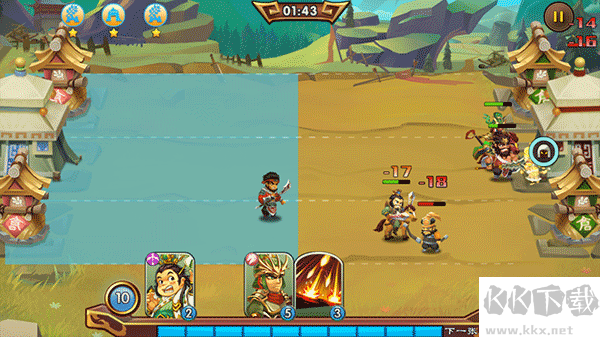 5、战斗场景与行动:战斗场景分 3 路,武将会在放置的那路行动,不跨路,可放置于我方半场任一路,战术卡不受此限制。战术卡作用范围有范围、一条道、全屏三种。