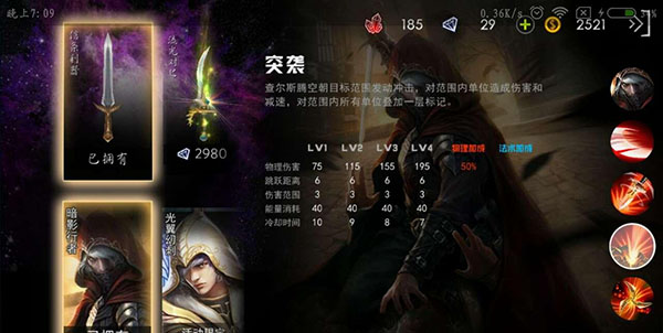 突袭:跳跃至目标位置,是位移技能,击中后增加标记效果,普攻可眩晕。是查尔斯追人,逃跑的技能,配合大招进入团战可有团控1秒,这也是查尔斯团战的贡献了。