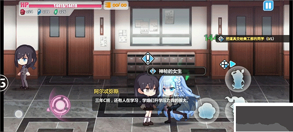 首先到达三楼,左转,到达3—B班,会有一名神秘的女生出现,带上她,前往2—C班。