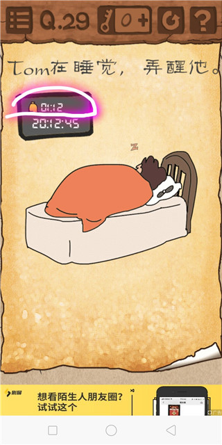 29、把手机时间设置成闹铃时间(图中所圈为闹铃时间的位置,闹铃时间随机,调成你手机上这个位置的时间就行)PS:如果你的手机是智能手机并且附近可以联网,那么一般不用担心时间调不回来,因为一般智能手机都有联网自动调时间,保证标准