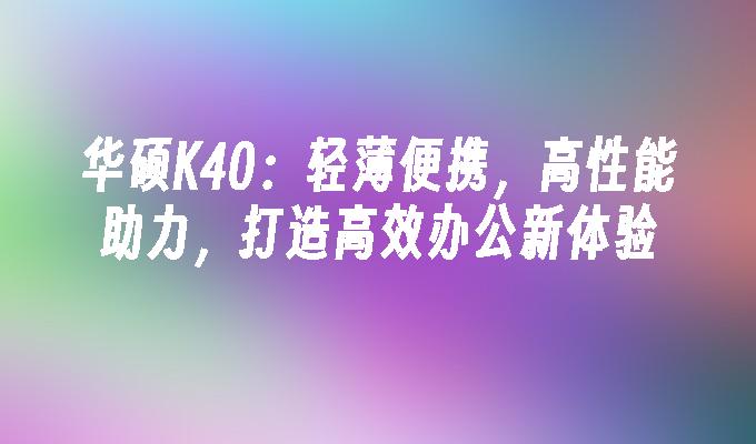 总结:华硕K40是一款轻薄便携、高性能的笔记本电脑,适合办公人士使用。它具备出色的性能和便携性,可以随时随地进行办公。同时,利用其配备的Windows 10操作系统和各种办公软件,用户可以提升办公效率,享受高效办公的新体验。