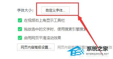 4. 点击【高级设置】以后改侧,然后我们在打开的页面中点击【自定义字体】,如下图所示。