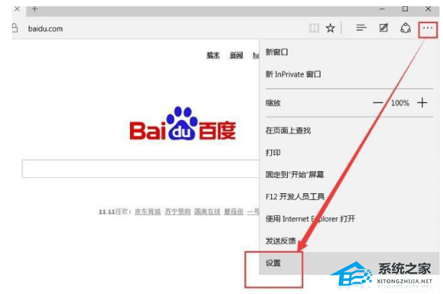 5、进入edge浏览器点击右上角三个点,选择“设置”。