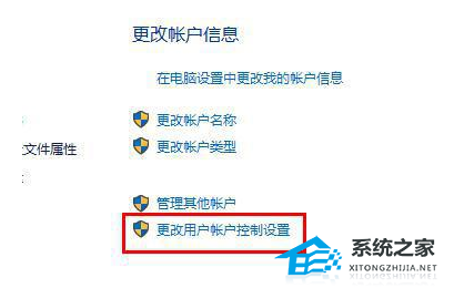 3、在更改账户信息下面选择“更改用户账户控制设置”。