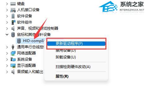 2. 找到想要更新的电脑驱动,右键选中,点击“更新驱动程序”。