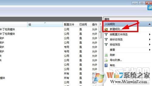 5、点击对话框左侧的"入站规则",然后点击右侧的"新建规则";