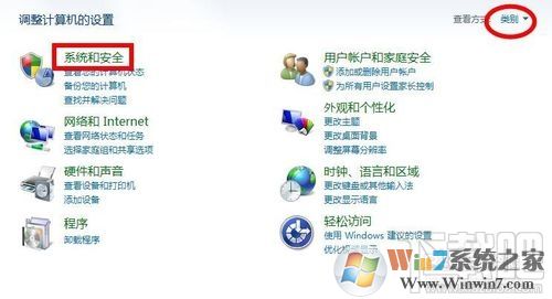 2、打开"调整计算机设置"窗口中的"系统和安全选项"对话框,如果在窗口中找不到选项,可以点击右侧类别旁边的下拉按钮,选择"类别"即可显示;