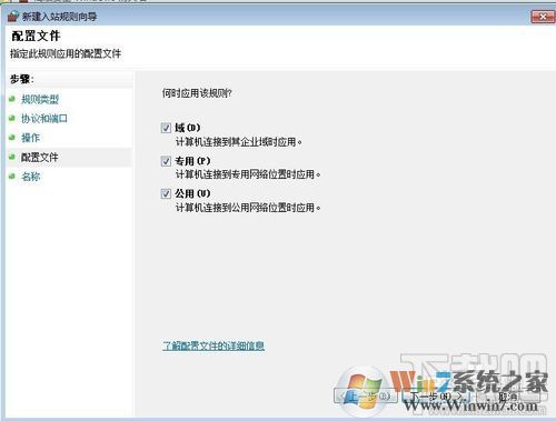 9、"域""专用""公用"都选上,点击下一步,输入"名称"和"描述"即可,这里你可根据自己需要内容自行决定,点击完成,这个组织规则就创建完成了。