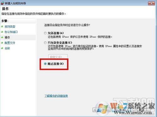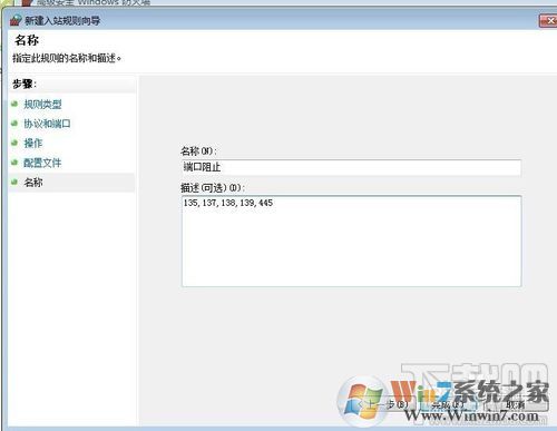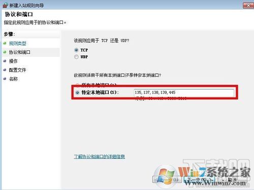 8、点击下一步,选择"特定本地端口",输入"135,137,138,139,445",端口号中间用逗号隔开即可,选择"阻止连接",然后点击下一步;