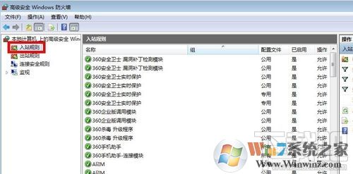 10、然后点击入站规则就可以显示之前设置的规则了,说明135,137,138,139,445等端口关闭已经生效了。