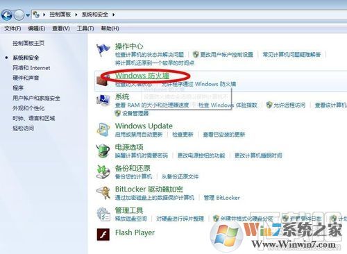 3、点击"Windows防火墙",将其打开;