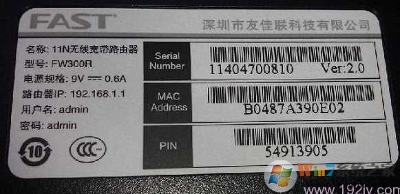 管理地址:192.168.1.1 用户名:admin 密码:admin