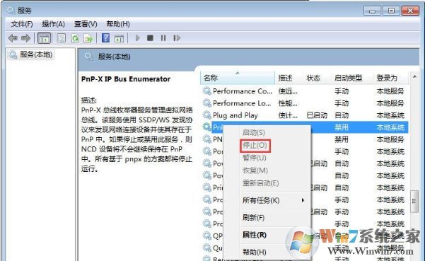 2、在窗内找到PnkBstrA和PnkBstrB,右键单击,在弹出菜单中选择"停止"。