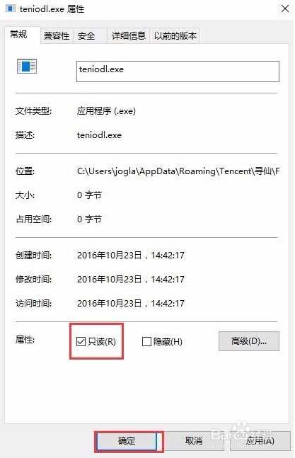 teniodl.exe文件所在文件夹中,并把空文件设置为只读;