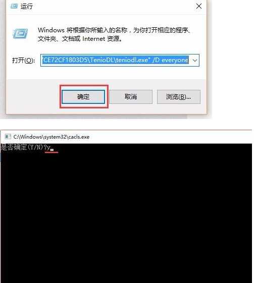 3、然后win+R运行下面的命令:cacls "路径" /D everyone(把路径两个字改成你文件的路径,我这里的路径为C:\Users\用户名\AppData\Roaming\Tencent\游戏名\F1192476628E294C4CE7CE72CF1803D5\TenioDL\teniodl.exe)