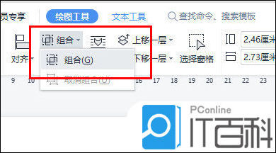 当然了你也可以点击上方的【绘图工具】栏目在里面选择【组合】。