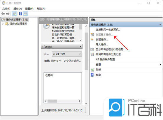 2、 点击计划任务程序库,然后点击右边的"创建基本任务";