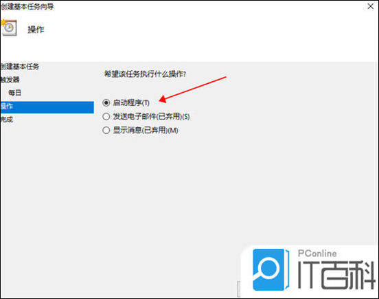 6、 执行操作选择"启动程序",因为我们需要执行命令;