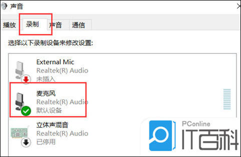 3. 声音”的界面中,我们切换至"录制"的选项卡,双击"麦克风";