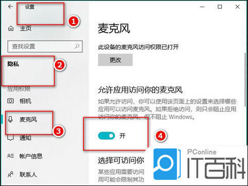 1. 点击桌面windows菜单图标,然后打开设置,在隐私选项上找到麦克风,我们将"允许应用访问你的麦克风"打开。