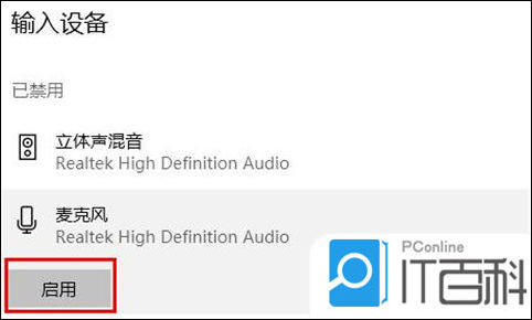 4. 最后在输入设备下面点击"麦克风",选择"启用"即可。