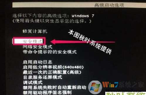 1、进入Win7安全模式,(如果是无法验证文件签名也可以进入禁用驱动程序强制签名模式)