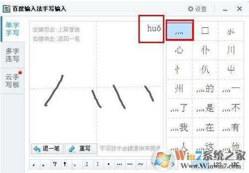 1、大多输入法都可以使用手写输入——单字手写 直接写上这个字就能看到,灬(huo)