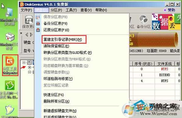 2、然后在菜单上点击"硬盘"——"重建主引导记录(MBR)"选项,出现确定后点"是";