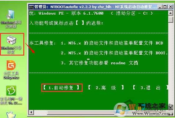 2、进入到PE后,一般桌面上都会有一个"Windows引导修复"图标,双击后如下并选择"自动修复";