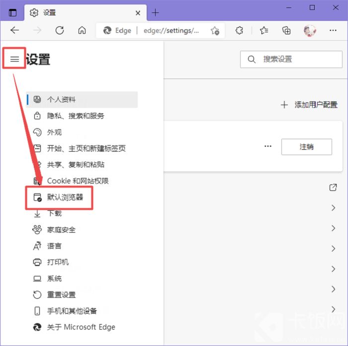 2.然后在展开的菜单中,点击下方的【设置】进入edge浏览器设置中;