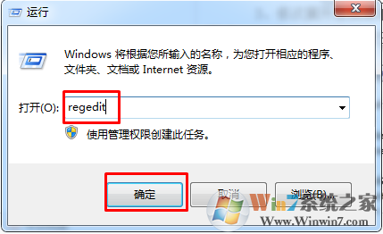 2、运行开始菜单—执行,输入regedit,单击确定,进入注册表编辑器;