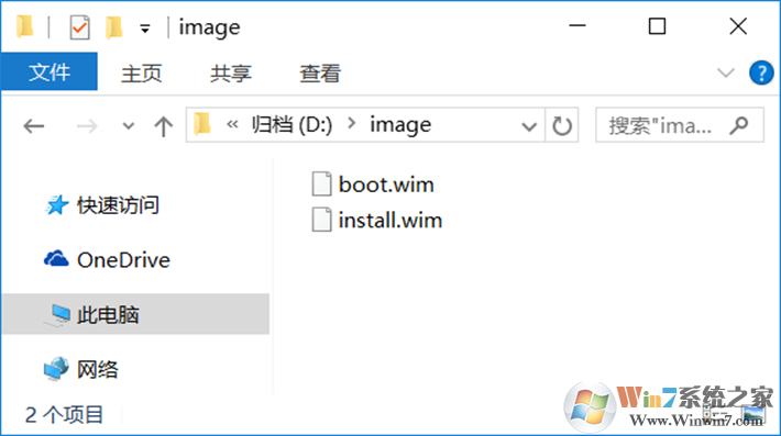6、复制光盘镜像 sources 文件夹中的 boot.wim 和 install.wim 到 d:\image