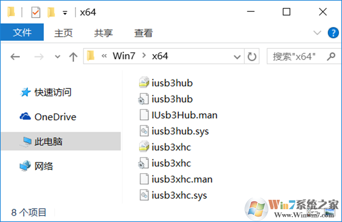 4、打开 Intel_USB_3.0_xHC_Driver_Skylake_MR6_PV_4.0.6.60\Drivers\xHCI\Win7 文件夹,如果系统是 32 位系统就继续打开 X86,如果是 64 位就打开 X64,复制对应文件夹的所有东西到 d:\usb