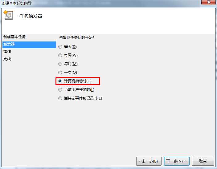 5、触发器设置为计算机启动时;