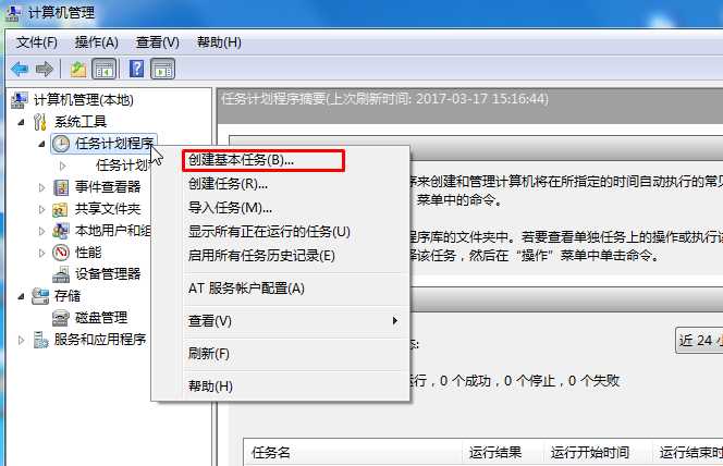3、然后右键点击创建基本任务;