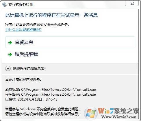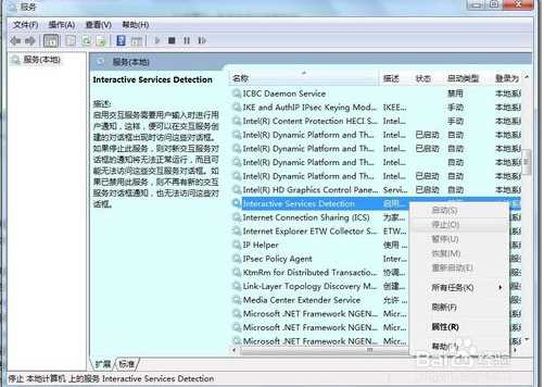 (Interactive Services Detection服务描述:启用交互服务需要用户输入时进行用户通知,这样,便可以在交互服务创建的对话框出现时访问这些对话框。如果停止此服务,则对新交互服务对话框的通知将无法正常运行,而且可能无法访问这些交互服务对话框。如果已禁用此服务,则不再有新的交互服务对话框通知,也无法访问这些对话框。)