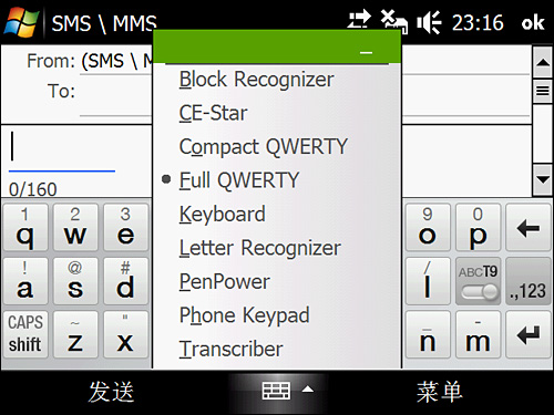 在输入法方面由于多普达Touch Pro采用了Windows Mobile 6.1的操作系统,因此用户也可以随意的安装第三方输入法进行使用。另外需要说明的一点便是目前使用的多普达Touch Pro为英文原版,大家看到的中文界面为安装汉化包后的显示效果,有部分菜单会显示不正常,但是不大影响使用。