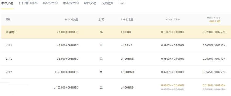 币安交易所(点此注册):如未使用BNB(币安币)支付交易手续费,每笔交易将收取0.1%的标准费用。如使用BNB支付,可享受交易手续费折扣。根据系统默认设置,如账户中存有BNB,交易手续费将从BNB余额中自动扣除。