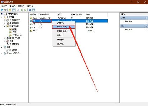 3、点击共享图标,我们的右侧界面就会有共享的内容了,在这里我们选择需要停止的共享,右键选择其中的停止共享即可。
