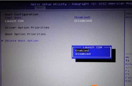 3、然后我们先按F10保存并退出BIOS,重启后继续按ESC键,这时候启动菜单还是没有的,同样还不能看到U盘,再次进入到BIOS后,我们切换到BOOT页面,把Launch CSM改为Enabled,OK,还是按F10保存并重启。