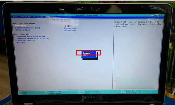 4,再接下来,在键盘上面用左右方向键切换至Boot栏,找到Boot mode项,把UEFl改成Legacy,如所图所示: