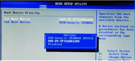 3、这时返回上一层,进入boot device Priority,会列出1st boot device,这就是第一启动设备,选择硬盘即可。