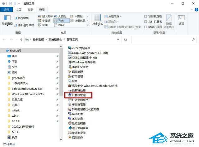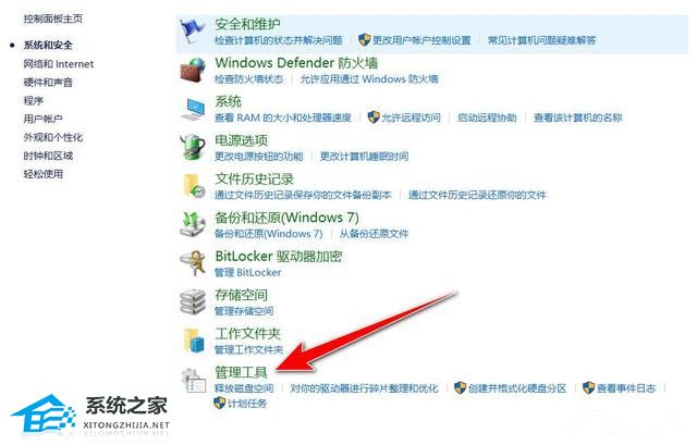 2. 单击系统和安全→管理工具。